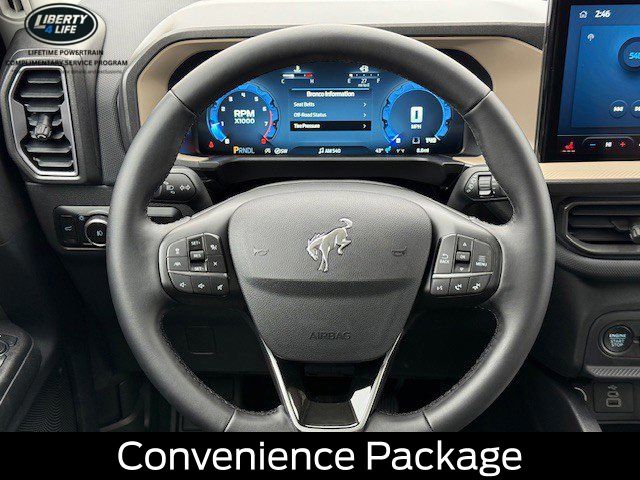 I got a 2025 Big Bend with the black diamond off road package. The steel modular front and rear in combination with bush guard gives this year model. A very aggressive off road look. With the ability to easily mount accessories and power them with the factory installed auxiliary switches. Hitch receiver seamlessly mounted into the rear steel bumper flanked by some very chunky recovery points. The upgraded aluminum rims wrapped with Continental all-terrains. It make this the most capable bronco sport yet. The interior of the 2025 has been updated with a new 13 inch touchscreen with Android Auto and apple car play. The lines of the dash flow elegantly from the new infotainment screen to the new all digital 12 inch gauge chaster. Toggling through the different modes on the gauge chaster is very intuitive, and all the displays are laid out very cleanly. Moving from gauge chaster the center storage cubby just below the infotainment screen there is a wireless charger and USB/ USB-c ports. The passenger side of that same cubby gets a handle and a matching one on the roof just in case the driver bucks a little too much. The passenger also gets a mesh storage area. That leads us to the fact this vehicle has tons of storage options all throughout. You have pockets on the sides of the front two seat big enough for the latest new phones. Very generous door storage on all four doors plus huge glove box and center console with 12 volt outlet. The back side of the center console has air vents and another 12 volt outlet plus a 110 outlet. Now getting to the cargo area it is massive for a crossover SUV. With off road package you get a cargo management system and a very nice rubber mat. Under that there is a full size tire plus scissor jack and funnel to use with the capless filler system. On the liftgate there isa pair of very bright led lights turned on with a switch in the cargo area. This feature packed vehicle has tons awesome gadgets and hidden a little homages I spend all day just talk that. At the end of the day it is car. So how does it drive. It is wonderful, the steering and pedal response is beautiful. Rides very smooth and little to no road noise going down the highway. The active cruise control and co-pilot 360 have been very handy. The car literally drives itself most of the time. There is not enough good things I could same about this car. I love it and you pick one too. You will see what I mean. - 5.0