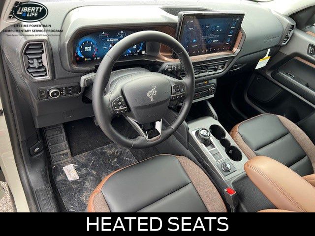 I got a 2025 Big Bend with the black diamond off road package. The steel modular front and rear in combination with bush guard gives this year model. A very aggressive off road look. With the ability to easily mount accessories and power them with the factory installed auxiliary switches. Hitch receiver seamlessly mounted into the rear steel bumper flanked by some very chunky recovery points. The upgraded aluminum rims wrapped with Continental all-terrains. It make this the most capable bronco sport yet. The interior of the 2025 has been updated with a new 13 inch touchscreen with Android Auto and apple car play. The lines of the dash flow elegantly from the new infotainment screen to the new all digital 12 inch gauge chaster. Toggling through the different modes on the gauge chaster is very intuitive, and all the displays are laid out very cleanly. Moving from gauge chaster the center storage cubby just below the infotainment screen there is a wireless charger and USB/ USB-c ports. The passenger side of that same cubby gets a handle and a matching one on the roof just in case the driver bucks a little too much. The passenger also gets a mesh storage area. That leads us to the fact this vehicle has tons of storage options all throughout. You have pockets on the sides of the front two seat big enough for the latest new phones. Very generous door storage on all four doors plus huge glove box and center console with 12 volt outlet. The back side of the center console has air vents and another 12 volt outlet plus a 110 outlet. Now getting to the cargo area it is massive for a crossover SUV. With off road package you get a cargo management system and a very nice rubber mat. Under that there is a full size tire plus scissor jack and funnel to use with the capless filler system. On the liftgate there isa pair of very bright led lights turned on with a switch in the cargo area. This feature packed vehicle has tons awesome gadgets and hidden a little homages I spend all day just talk that. At the end of the day it is car. So how does it drive. It is wonderful, the steering and pedal response is beautiful. Rides very smooth and little to no road noise going down the highway. The active cruise control and co-pilot 360 have been very handy. The car literally drives itself most of the time. There is not enough good things I could same about this car. I love it and you pick one too. You will see what I mean. - 5.0