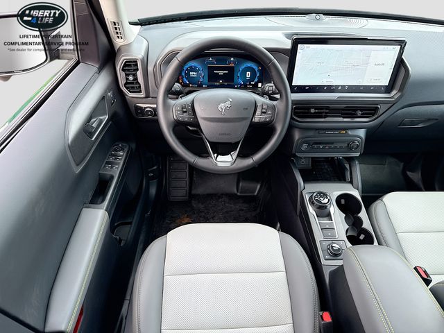 I got a 2025 Big Bend with the black diamond off road package. The steel modular front and rear in combination with bush guard gives this year model. A very aggressive off road look. With the ability to easily mount accessories and power them with the factory installed auxiliary switches. Hitch receiver seamlessly mounted into the rear steel bumper flanked by some very chunky recovery points. The upgraded aluminum rims wrapped with Continental all-terrains. It make this the most capable bronco sport yet. The interior of the 2025 has been updated with a new 13 inch touchscreen with Android Auto and apple car play. The lines of the dash flow elegantly from the new infotainment screen to the new all digital 12 inch gauge chaster. Toggling through the different modes on the gauge chaster is very intuitive, and all the displays are laid out very cleanly. Moving from gauge chaster the center storage cubby just below the infotainment screen there is a wireless charger and USB/ USB-c ports. The passenger side of that same cubby gets a handle and a matching one on the roof just in case the driver bucks a little too much. The passenger also gets a mesh storage area. That leads us to the fact this vehicle has tons of storage options all throughout. You have pockets on the sides of the front two seat big enough for the latest new phones. Very generous door storage on all four doors plus huge glove box and center console with 12 volt outlet. The back side of the center console has air vents and another 12 volt outlet plus a 110 outlet. Now getting to the cargo area it is massive for a crossover SUV. With off road package you get a cargo management system and a very nice rubber mat. Under that there is a full size tire plus scissor jack and funnel to use with the capless filler system. On the liftgate there isa pair of very bright led lights turned on with a switch in the cargo area. This feature packed vehicle has tons awesome gadgets and hidden a little homages I spend all day just talk that. At the end of the day it is car. So how does it drive. It is wonderful, the steering and pedal response is beautiful. Rides very smooth and little to no road noise going down the highway. The active cruise control and co-pilot 360 have been very handy. The car literally drives itself most of the time. There is not enough good things I could same about this car. I love it and you pick one too. You will see what I mean. - 5.0