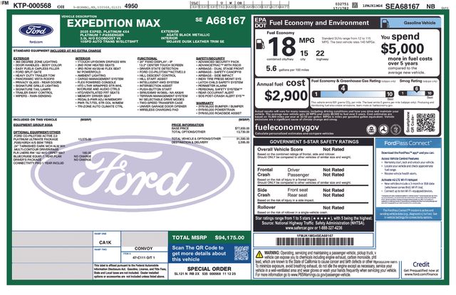 The Expedition Max Platinum's impressive capabilities are further enhanced by the Platinum Ultimate Package, which includes the BlueCruise autonomous driving system, a high-output 3.5L V6 EcoBoost engine, and a premium audio system that will immerse you in a truly captivating audio experience.