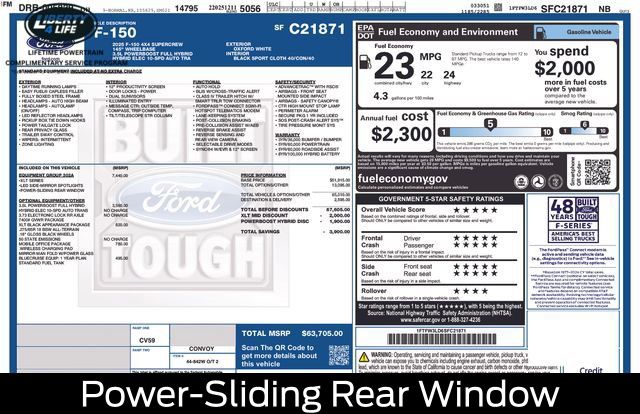 Oxford White 2025 Ford F-150 XLT 4WD 10-Speed Automatic 3.5L PowerBoost Full-Hybrid V6 23/23 City/Highway MPG