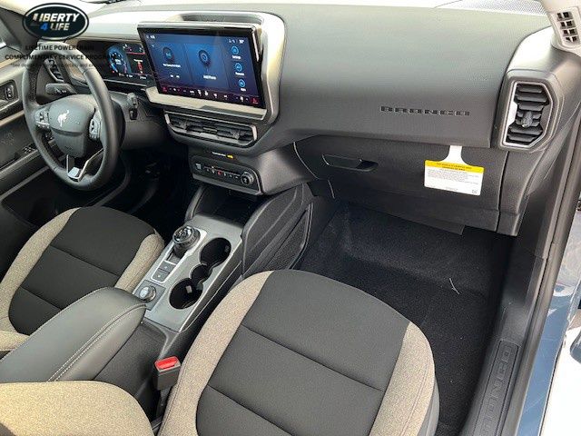 Step inside the Bronco Sport and you'll be greeted by a spacious and well-appointed interior. The cloth front bucket seats with easy-to-clean surfaces provide both comfort and practicality, while the 8-way power driver's seat ensures you can find the perfect driving position. The SYNC 4 infotainment system with enhanced voice recognition keeps you connected and entertained on the go.