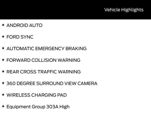 Safety and technology are also top priorities, with features like Adaptive Cruise Control with Stop and Go, Ford Co-Pilot360 Assist 2.0, and the 360 Degree Camera providing peace of mind and enhanced driving capabilities.